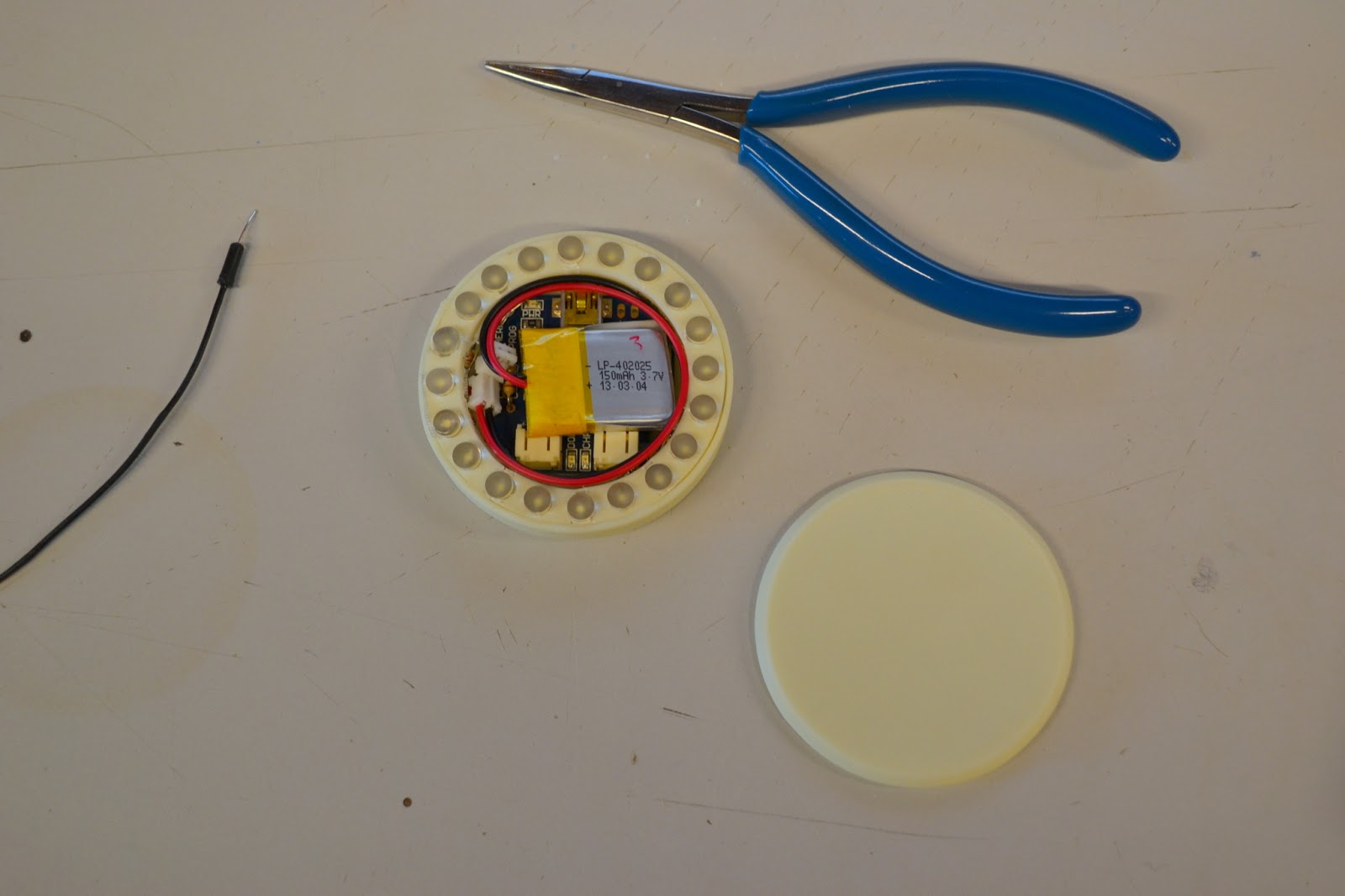 First attempt at light ring. Tedious solder job but worked pretty good. Printed out the jig and case on the MakerBot.